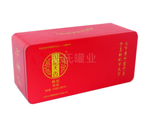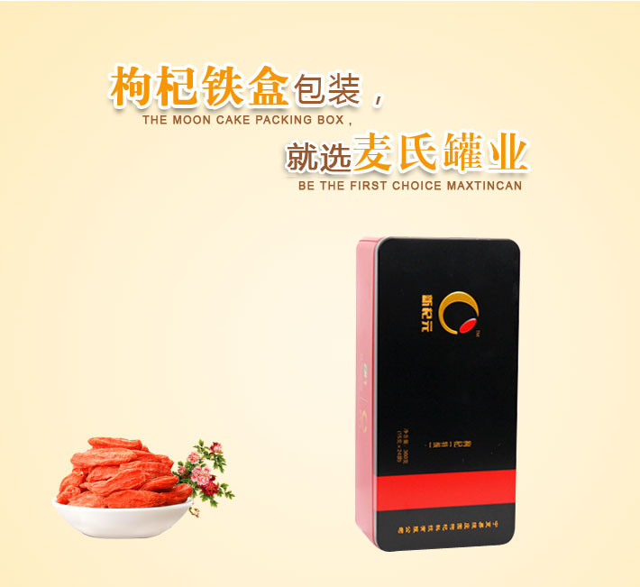 定做350g枸杞鐵盒子,長(zhǎng)方形黑枸杞包裝盒,食品鐵盒加工廠