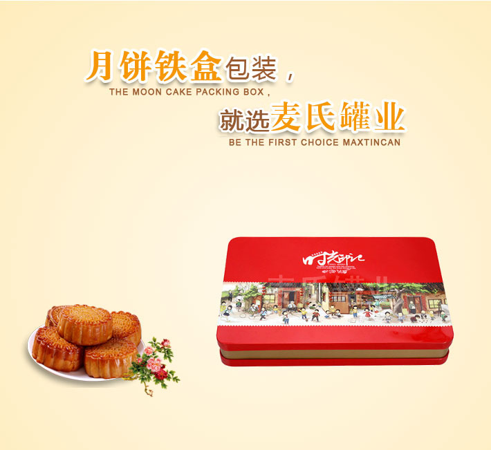 此款八個(gè)裝月餅鐵盒,整體造型為不失大氣的長(zhǎng)方形,內(nèi)卷線縮口蓋設(shè)計(jì),鐵盒尺寸為:360mm*230mm*58mm,可為您滿足包裝八個(gè)裝的月餅產(chǎn)品。