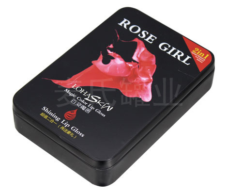 此款變色唇膏包裝鐵盒產品材質為鍍錫馬口鐵料制作而成,其厚度控制在0.23mm,鐵盒整體結構為兩片罐,內卷線天地蓋,經典的長方形設計,可包裝各種唇膏化妝產品。