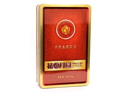 此款長方形月餅包裝鐵皮盒,外形為經典不失大氣的長方形結構,內卷線縮口蓋設計,鐵盒尺寸為:230mm*130mm*68mm,能為您包裝六個裝、八個裝的各種口味的中秋月餅產品.