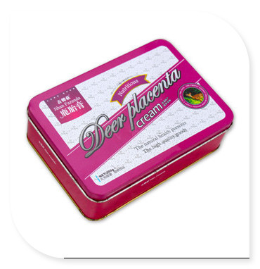 產品簡介:長方形鹿胎膏包裝鐵盒。鐵盒選用進口馬口鐵材質制成,具有優異的密封性、防水性、防銹性等特點,鐵盒版面為麥氏罐業自行設計,四色印刷工藝,內外過水性光油,可根據您的需求,過金油、爆炸油、皺紋油、珠光油等涂料。鐵盒不僅可包裝鹿胎膏產品外,還能包裝靈芝孢子粉、阿膠固元糕、蜂膠等保健食品。