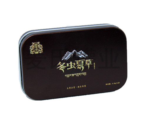 該款冬蟲夏草含片馬口鐵包裝盒選用四片式內塞蓋結構,長方形結構,表面光滑平整,不易劃手。鐵盒做工精細,盒蓋與盒身配合良好便于打開,骨位平滑。而這款鐵盒具有耐蝕性、防潮性等優點,印刷工藝更為一絕!