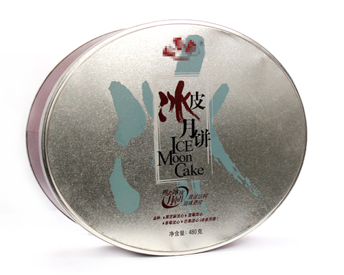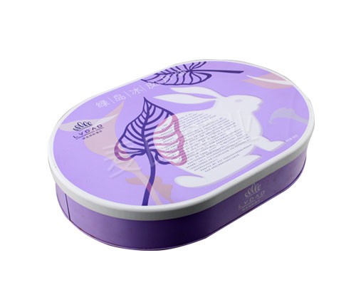 此款橢圓形中秋月餅鐵盒產品在印刷工藝方面,使用了四色與專色印刷工藝制作,內外表面處理為過光油。鐵盒作有透鐵效果處理,使得鐵盒整體具有的金屬質感。