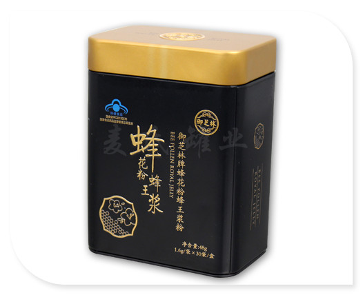 蜂王漿膠囊鐵盒-蜂王漿鐵盒,馬口鐵盒,鐵盒包裝,尺寸:216*136*56mm;此款蜂王漿膠囊鐵盒材質有馬口鐵,印刷:四色/專色印刷,具體詳情可根據客戶定制生產。麥氏罐業鐵盒鐵罐廠家大量制作醫藥蜂王漿膠囊鐵盒,量大價優!咨詢熱線:186*7632*2818!