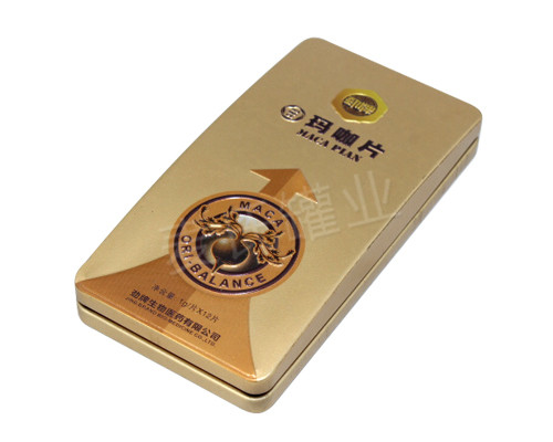 此款滑蓋人參片鐵盒包裝,保健食品馬口鐵盒采用國產一級馬口鐵沖壓而成,單面四色印刷工藝,外過啞油、內過食品級金油,非常適合包裝各種保健食品。