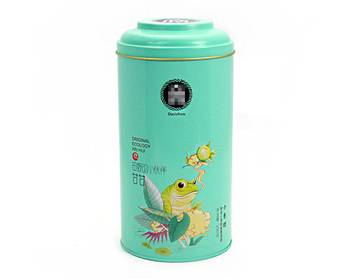 此款馬口鐵圓罐茶葉鐵罐包裝為單面CMYK四色印刷處理,外過水性亮光油,內涂金油,過油目的不僅能提高鐵盒整體效果,具有強烈的金屬質感外,還對鐵盒印刷面形成一層致密的保護膜,對鐵罐刮花、防銹起到一定的防護作用。除了過光油、透明油外,客戶還可選擇過皺紋油、珠光油、爆炸油等。