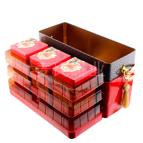 產品咨詢: 九個裝月餅包裝鐵盒,鐵月餅套裝盒加工,定制馬口鐵月餅罐子