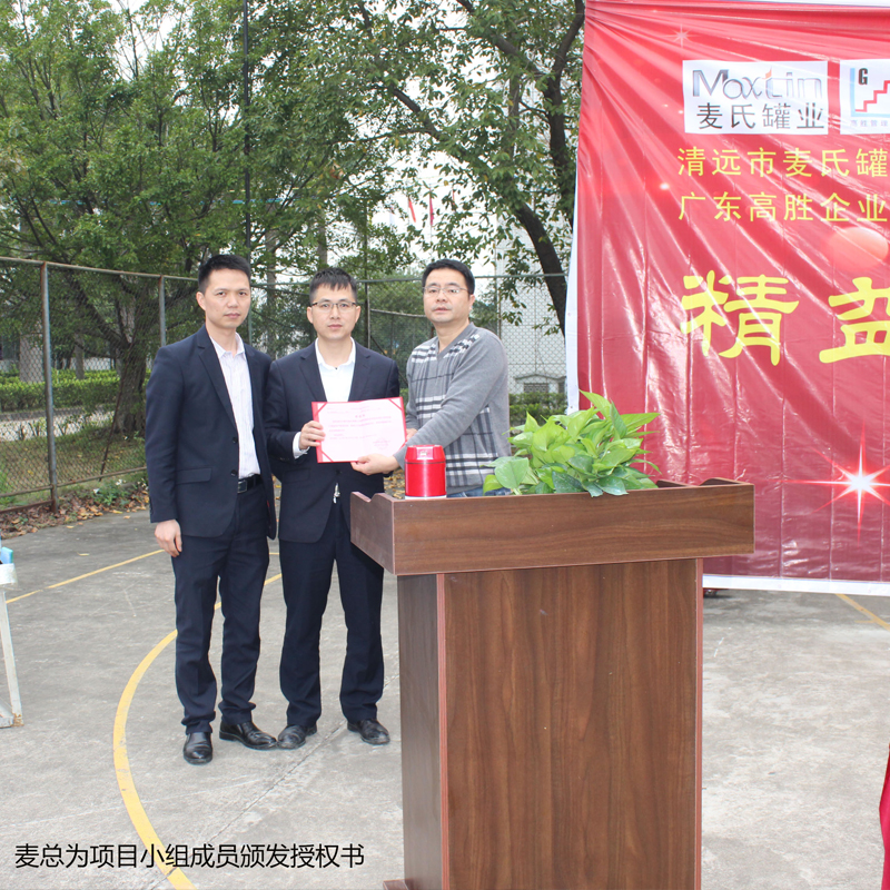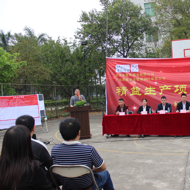 3月21日,公司隆重召開了2017年精益生產項目啟動誓師大會,正式拉開了麥氏罐業推行精益生產項目的序幕??偨浝睇渼︿h先生、常務副總徐源先生、副總經理伍志剛先生、高勝項目組老師謝定家先生等出席大會并做重要講話。公司主管級以上干部、精益生產項目負責人、麥氏全體員工共同參與了此次盛會。